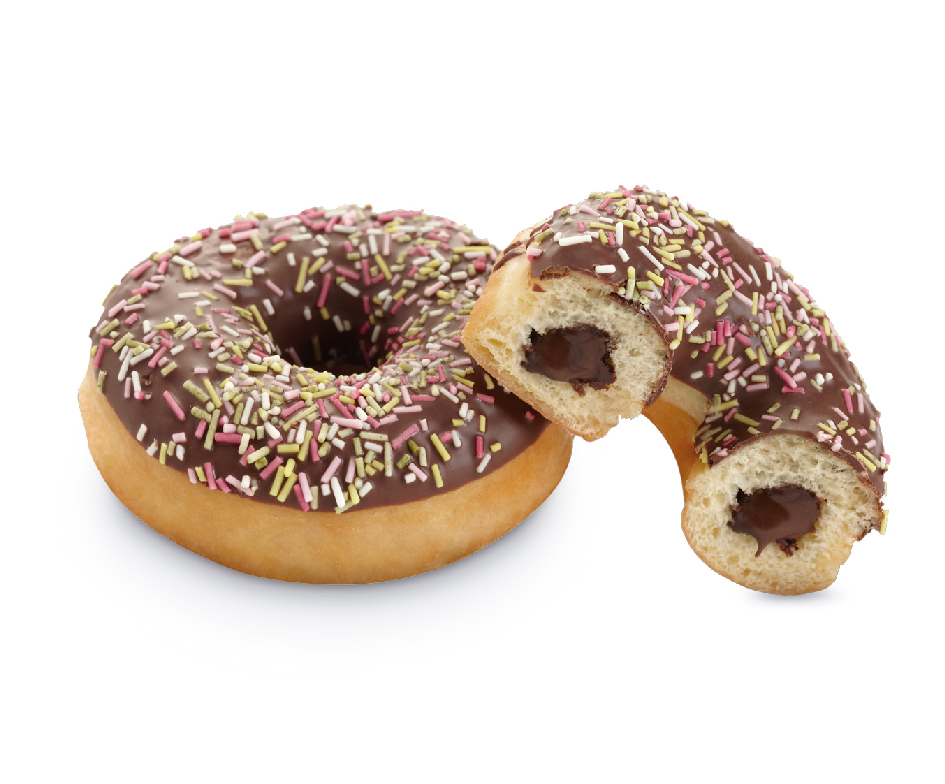 Conoce el Dots en su versión más colorida. Relleno de cremoso chocolate y decorado con fideos de colores.