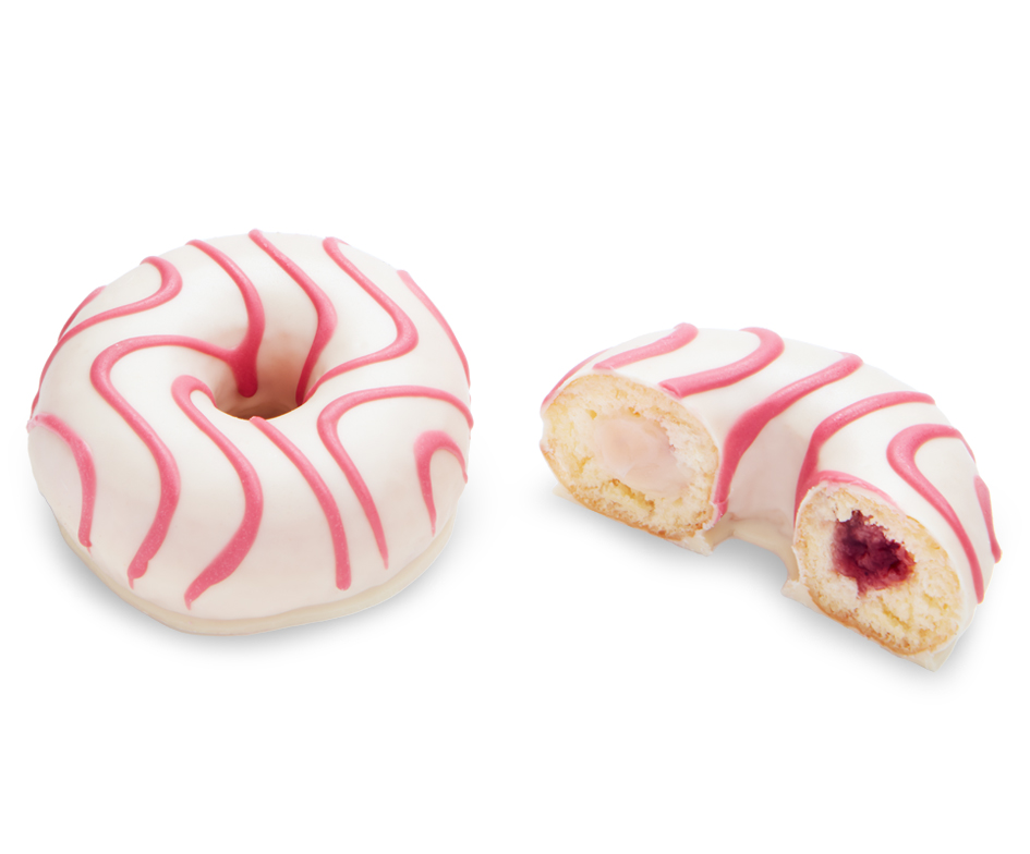 ¿Será un cheesecake? ¿Será un Dots®? ¿Y por qué tener que escoger si lo puedes tener todo? Rellenamos nuestra exquisita y esponjosa masa de Dots® con crema de queso y mermelada de frambuesa, la recubrimos con bombón blanco y la coronamos con un atractivo rayado en bombón rojo.