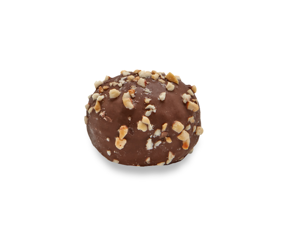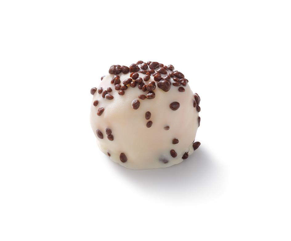 Relleno con crema de cacao intenso, su crujiente cobertura de bombón de cacao es aún más vistosa gracias a sus perlas de tres bombones: blanco, negro y castaño. Un sabroso estallido chocolateado que no dejará indiferente a nadie.