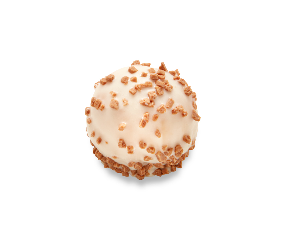 El Pop Dots Blanco con Caramelo nos seduce con su capa de chocolate blanco y trocitos de toffee.