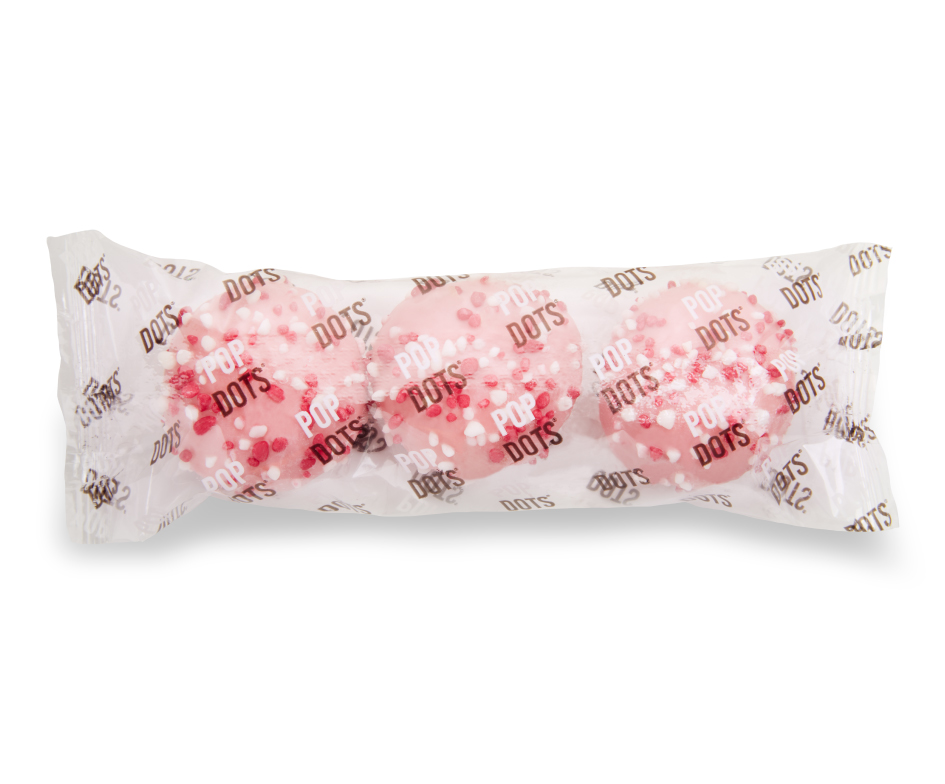 El Pop Dots Rosa de Fresa es todo alegría. Su llamativa cobertura con miniperlas sabor a fresa y crema enamora.