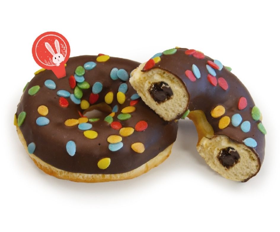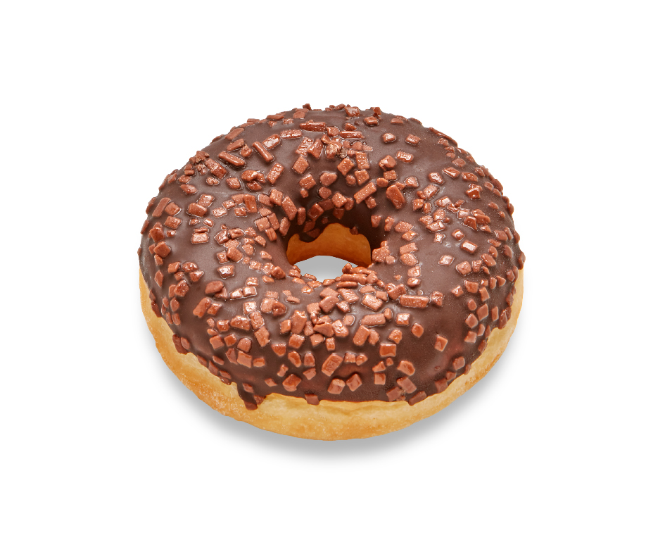 Soft dough coated in chocolate and decorated with Belgian chocolate sprinkles on top.