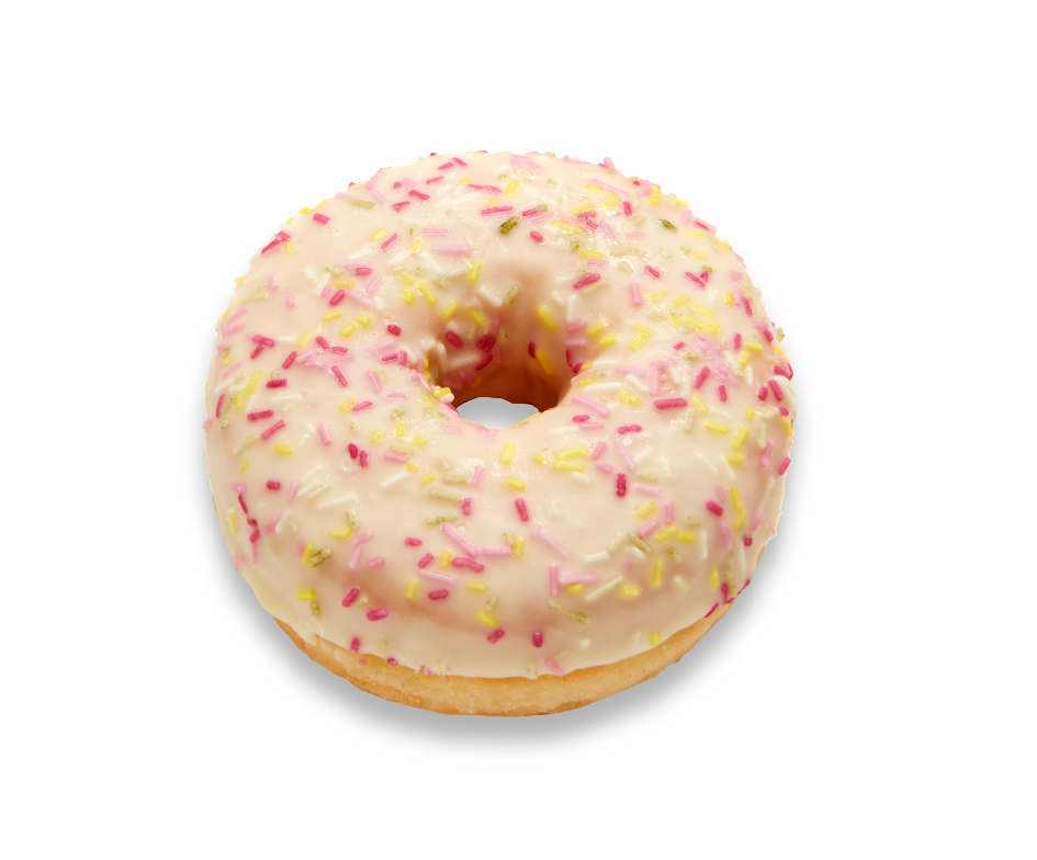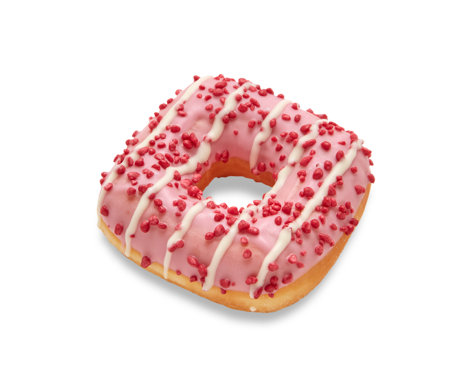 Meet our new and original Dots, essential to make your range stand out with a touch of colour: pink strawberry-coated flavour with white sugar strands on top.