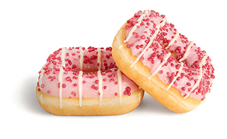 Our Dots with a bright touch of color: pink! Delicate strawberry-flavored glaze with white sprinkles, to delight all the senses.