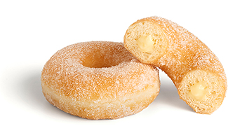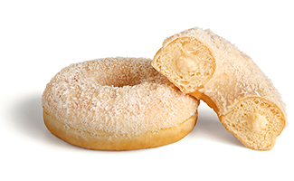Soft dough filled with a custard flavored creamy filling decorated with granulated sugar.