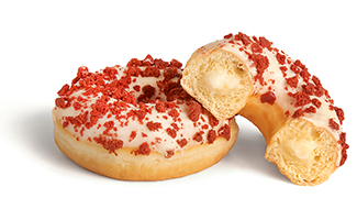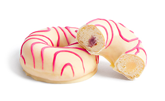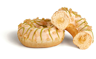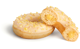 Our soft Dots Original® donuts with a creamy lemon filling, a white coating, and topped with yellow sugar nibs. They're the perfect combination of sweet and tart.