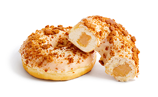 Uniquely filled Dots with a secret awaiting inside: every little bite reveals a creamy caramel-flavored filling. The white icing on top is highlighted with a crunchy caramel-flavored topping for added flavor and added texture.