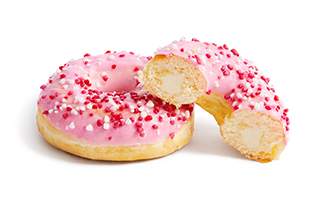 Soft dough filled with an irresistible Yogurt Crème filling- Top half covered in white icing, and red velvet biscuit toppings as a perfect finishing touch to these treats.