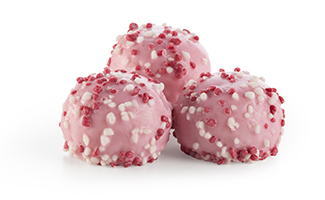 Pink PopDots are a total delight. Their attractive coating, with strawberry and cream-flavored sprinkles, are irresistible.