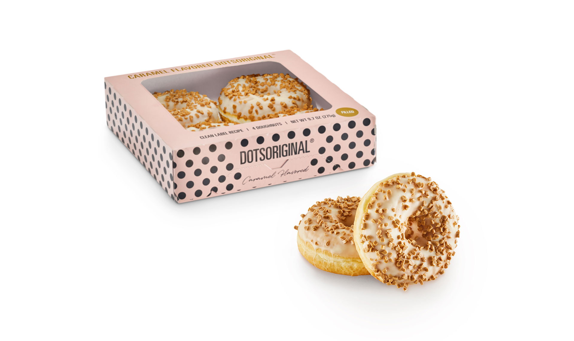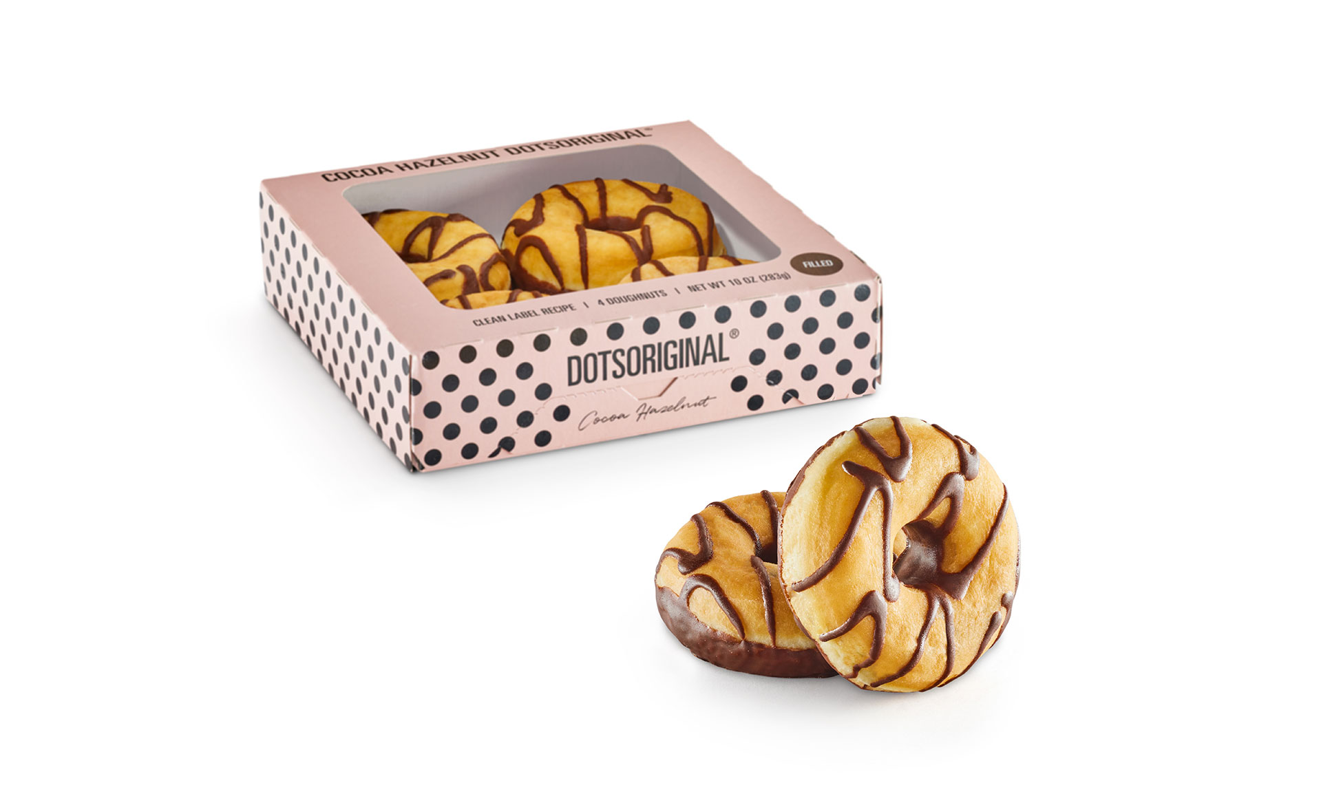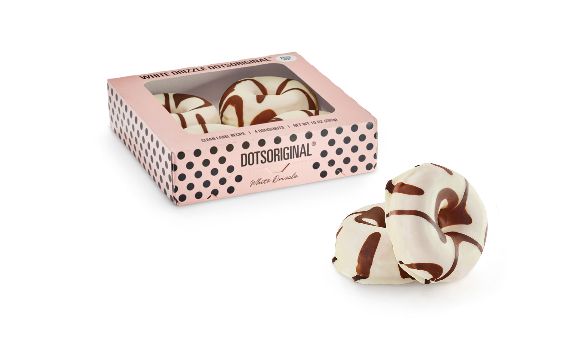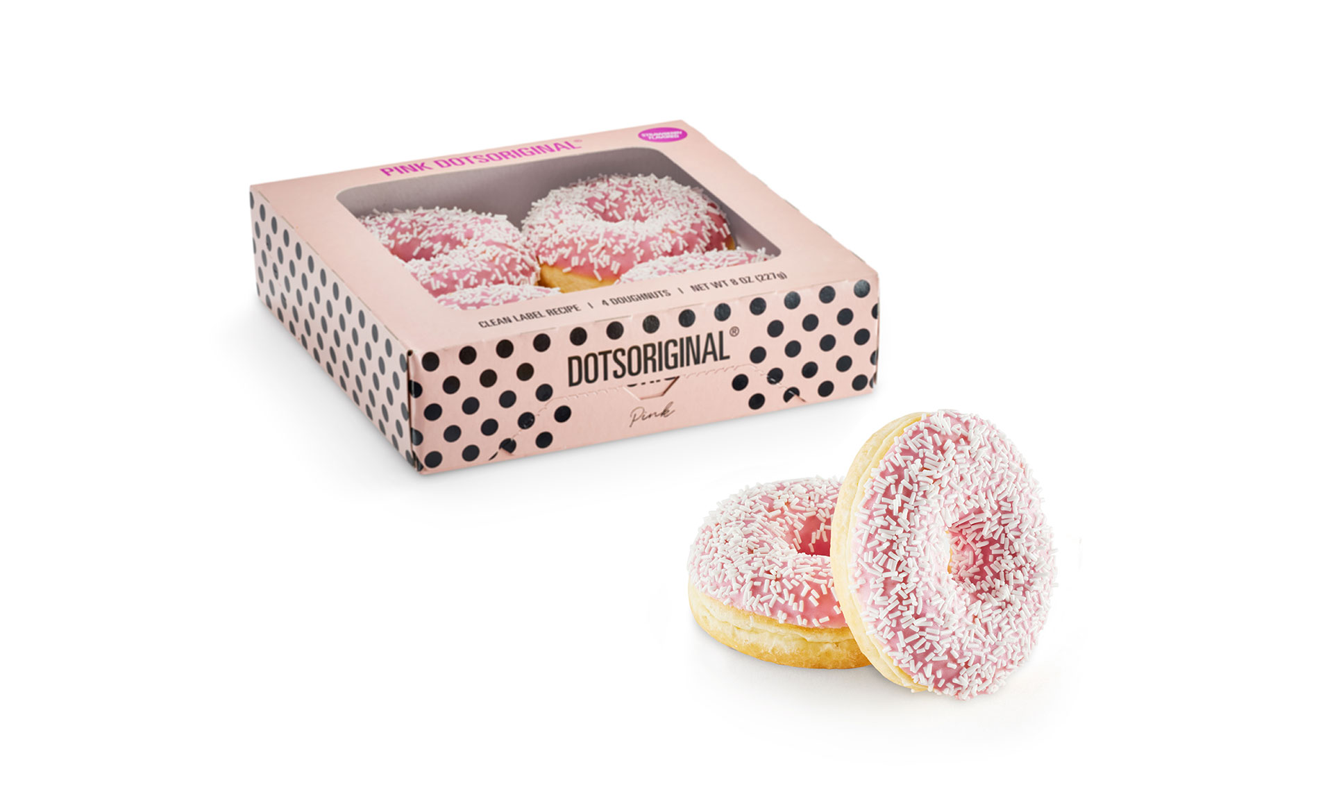 Our vibrant Pink Dots, now in a convenient 4-pack retail ready box! These Dots feature a strawberry-flavored glaze and white sprinkles that will catch anyone's attention and leave them wanting more after just one taste. All of this, made with clean label products so your customers can feel good about enjoying a treat like this.